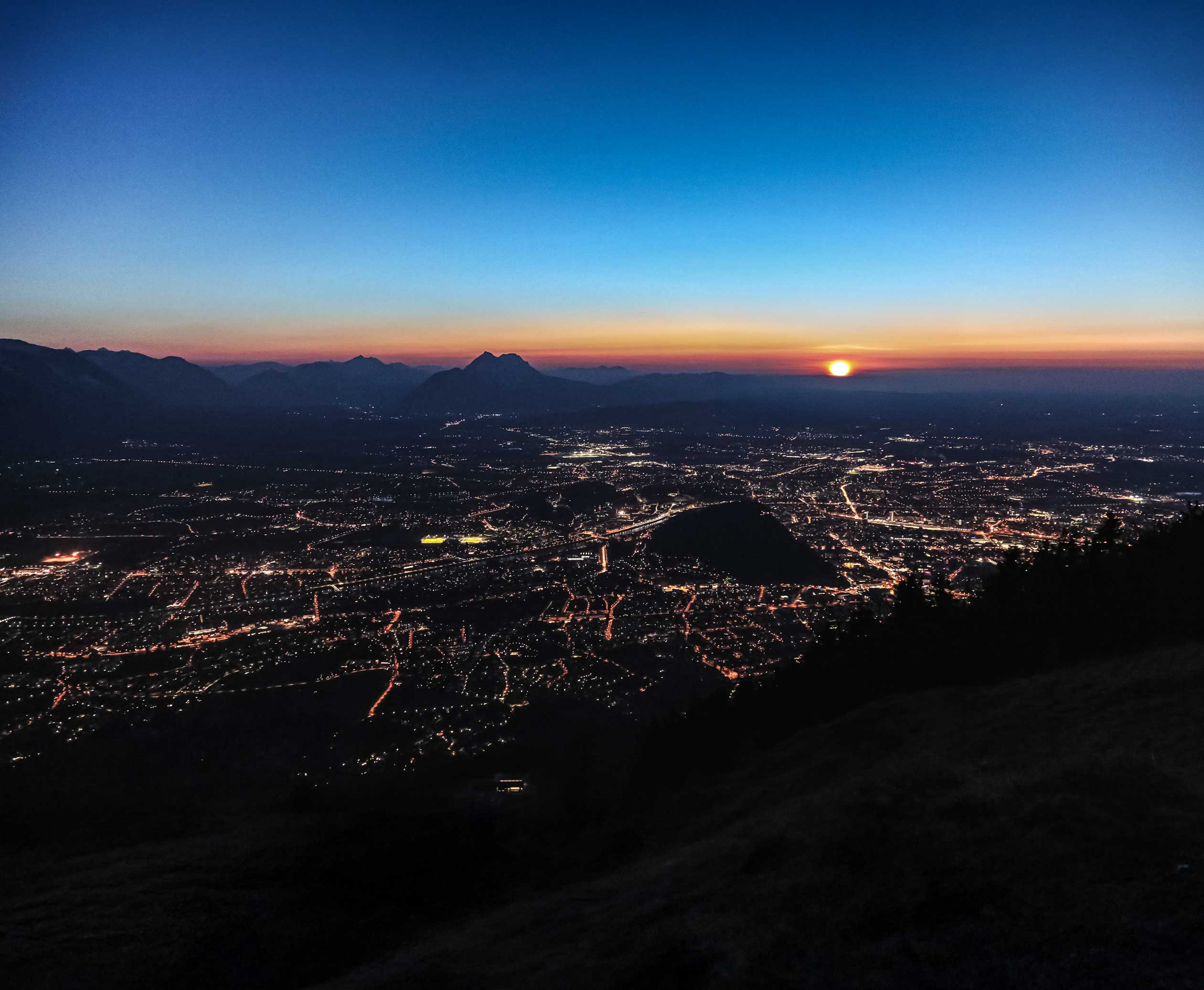 The Sunset Tour is always the first tour of the day and offers the chance to witness a breathtaking sunset from the Gaisberg Summit—weather permitting. As daylight fades, you’ll see Salzburg’s landmarks transition into the evening glow.