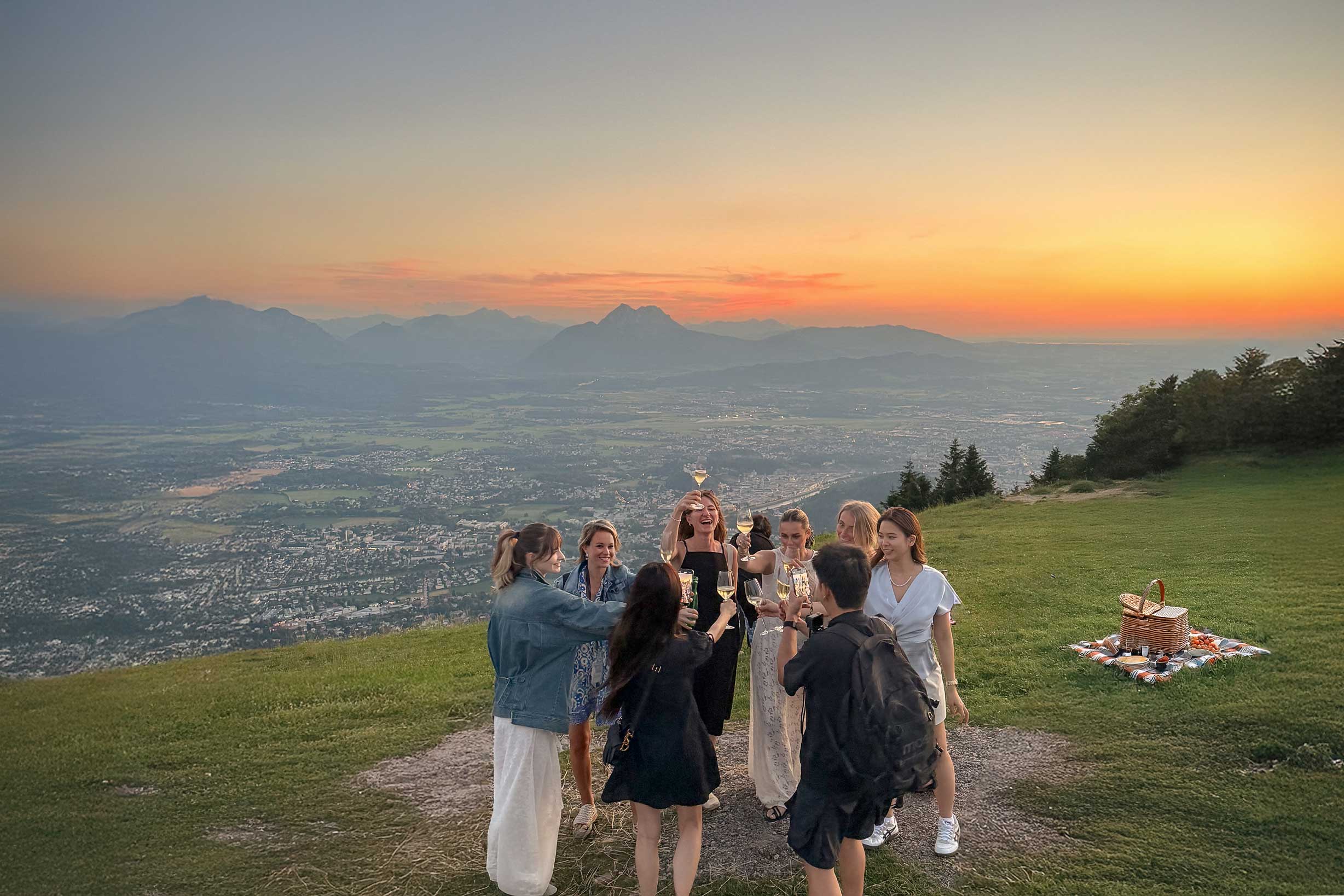 This private signature journey unfolds step by step — beginning with sweeping views from the Gaisberg summit before moving through Mönchsberg and Kapuzinerberg to Schloss Leopoldskron. Each stop is chosen for atmosphere, natural flow, and the way it reveals Salzburg’s changing light from golden hour through dusk.